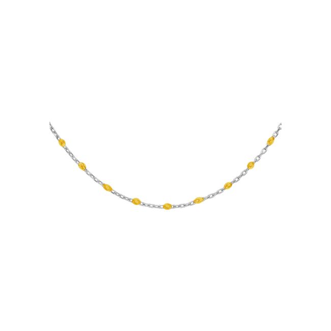 Collier argent rhodié olives résine jaune translucide 40+5cm