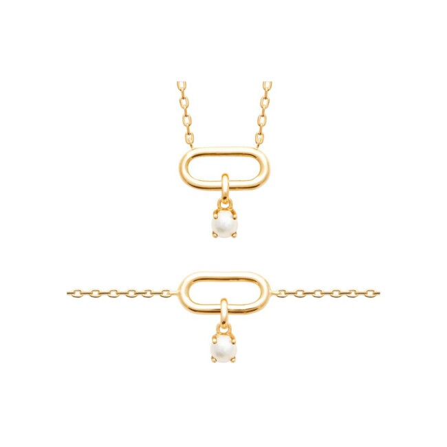 Collier en plaqué or, perle d'imitation et oxyde de zirconium