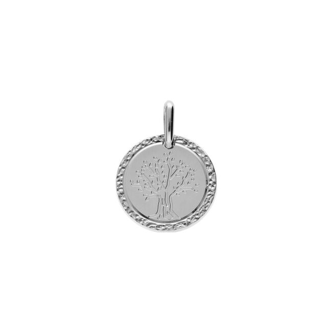 Médaille 16mm Arbre De Vie contour diamanté en argent rhodié
