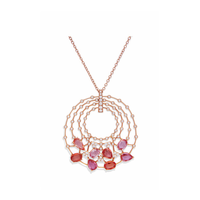 Pendentif Padparadscha en or rose, saphir et diamants
