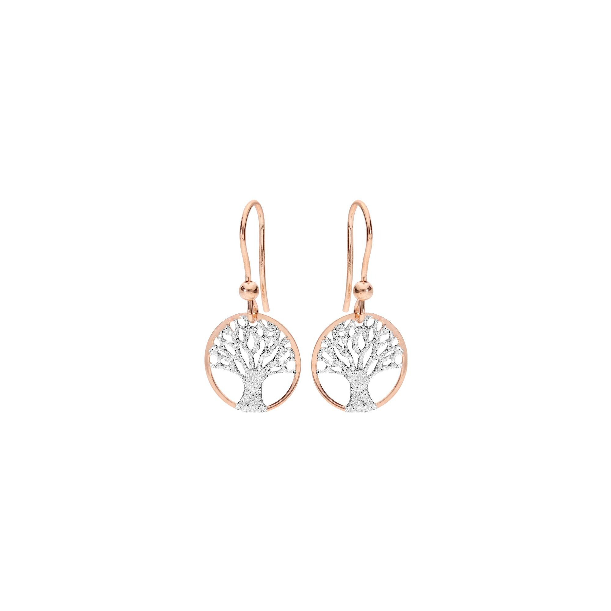 Boucles d'oreilles crochet argent et dorure rose arbre de vie granité 15mm Description détaillée