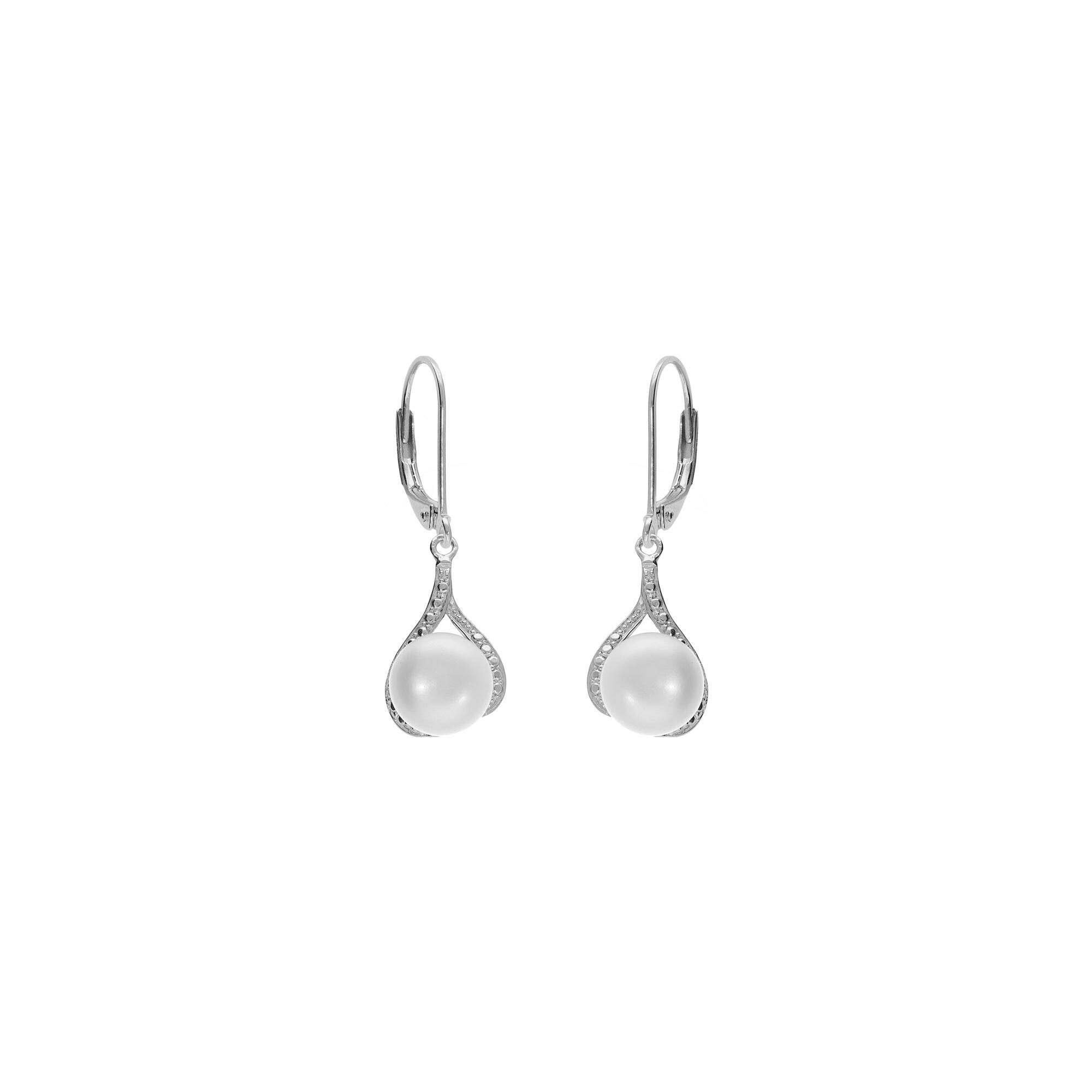 Boucles d'oreilles domeuse forme goutte argent platiné perle de culture d'eau douce avec oxydes blancs sertis Description détaillée