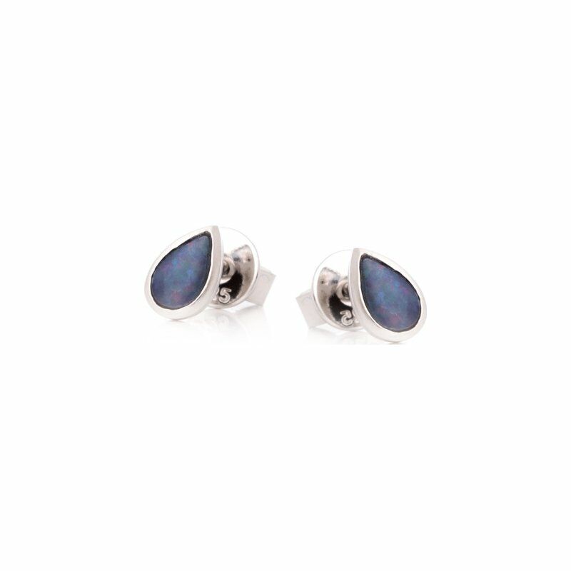 Boucles d'oreilles en argent rhodié et opale Description détaillée