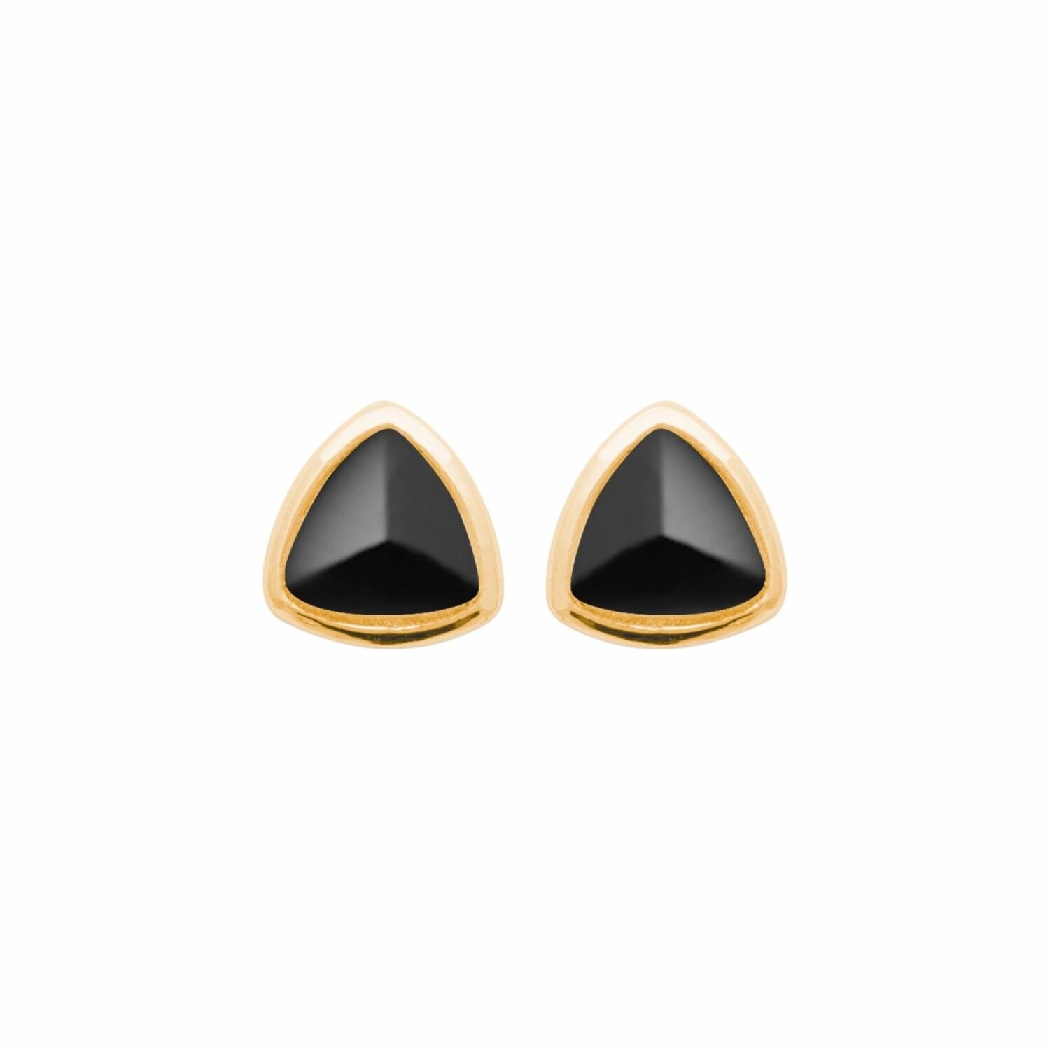 Boucles d'oreilles en plaqué or et agate noire Description détaillée