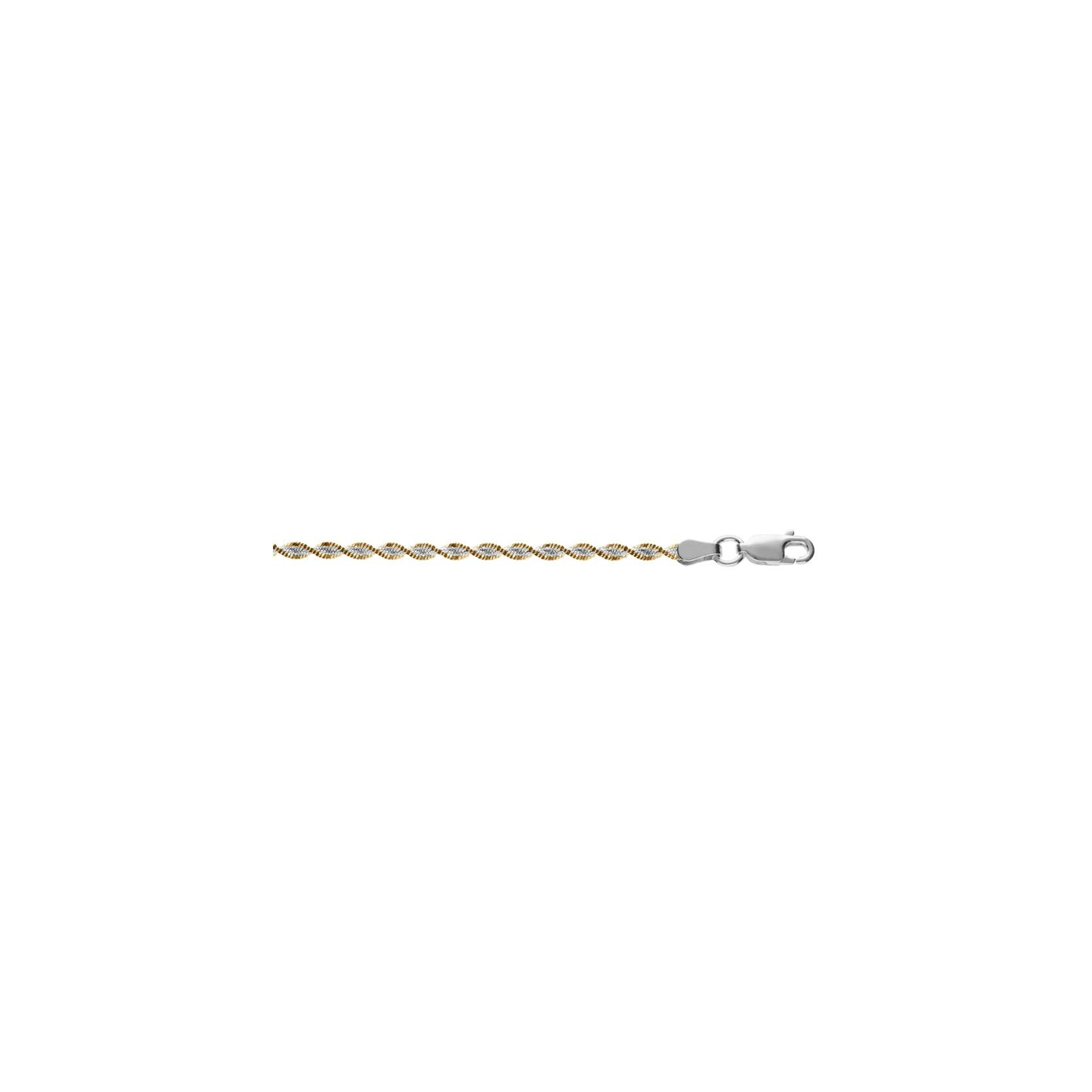 Bracelet argent chaine vrille 3mm bordure dorure jaune 17cm Description détaillée