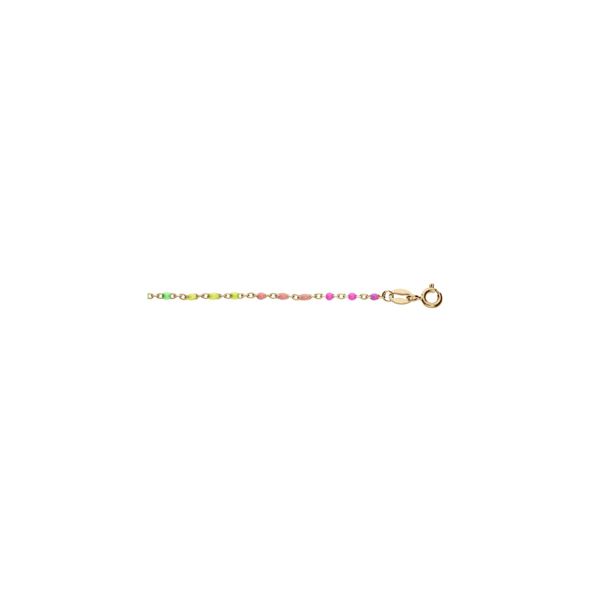Bracelet argent et dorure jaune résine multicolore degradé rose vert 15+3cm Description détaillée