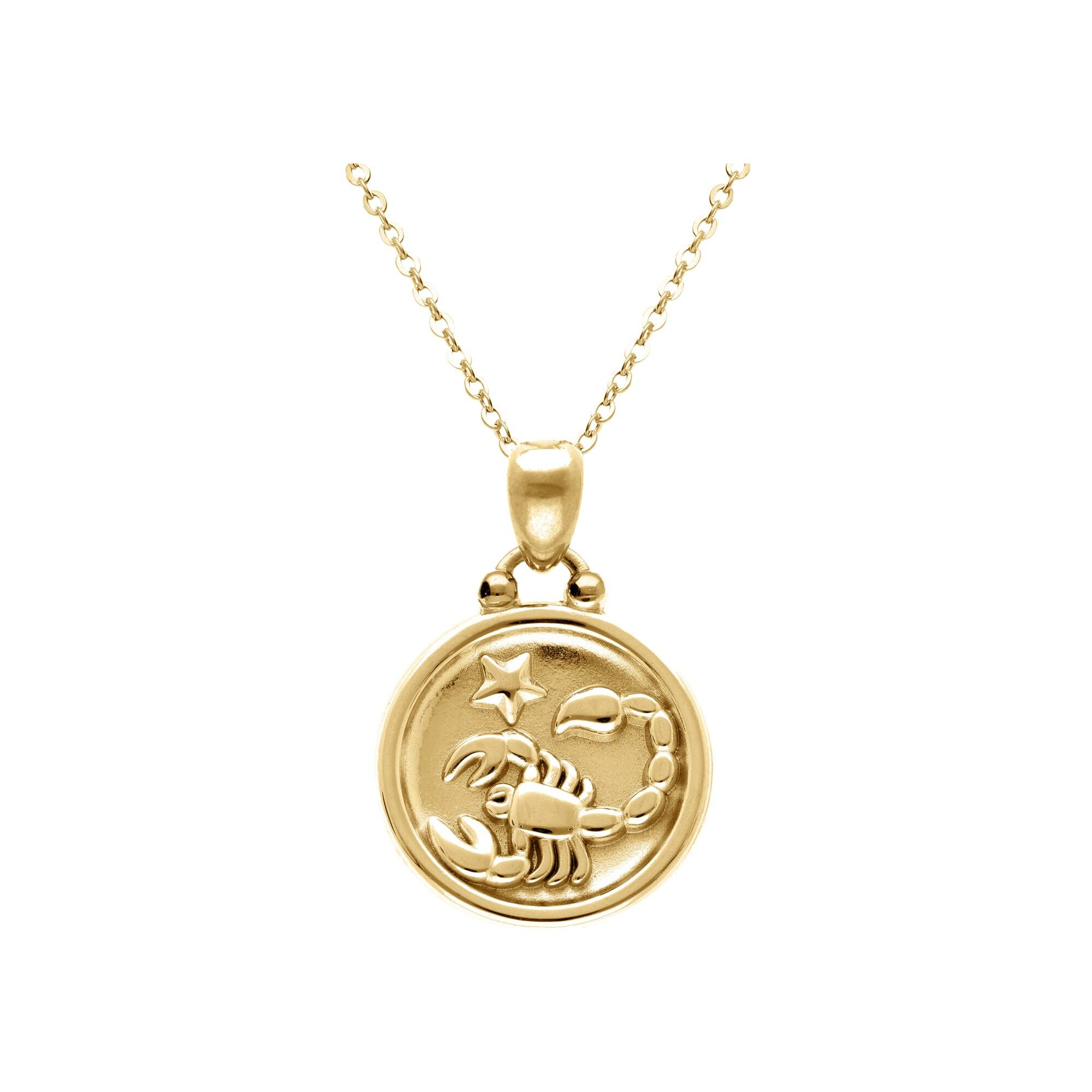 Collier acier doré médaille 15mm zodiaque scorpion recto verso constellation 40+10cm Description détaillée