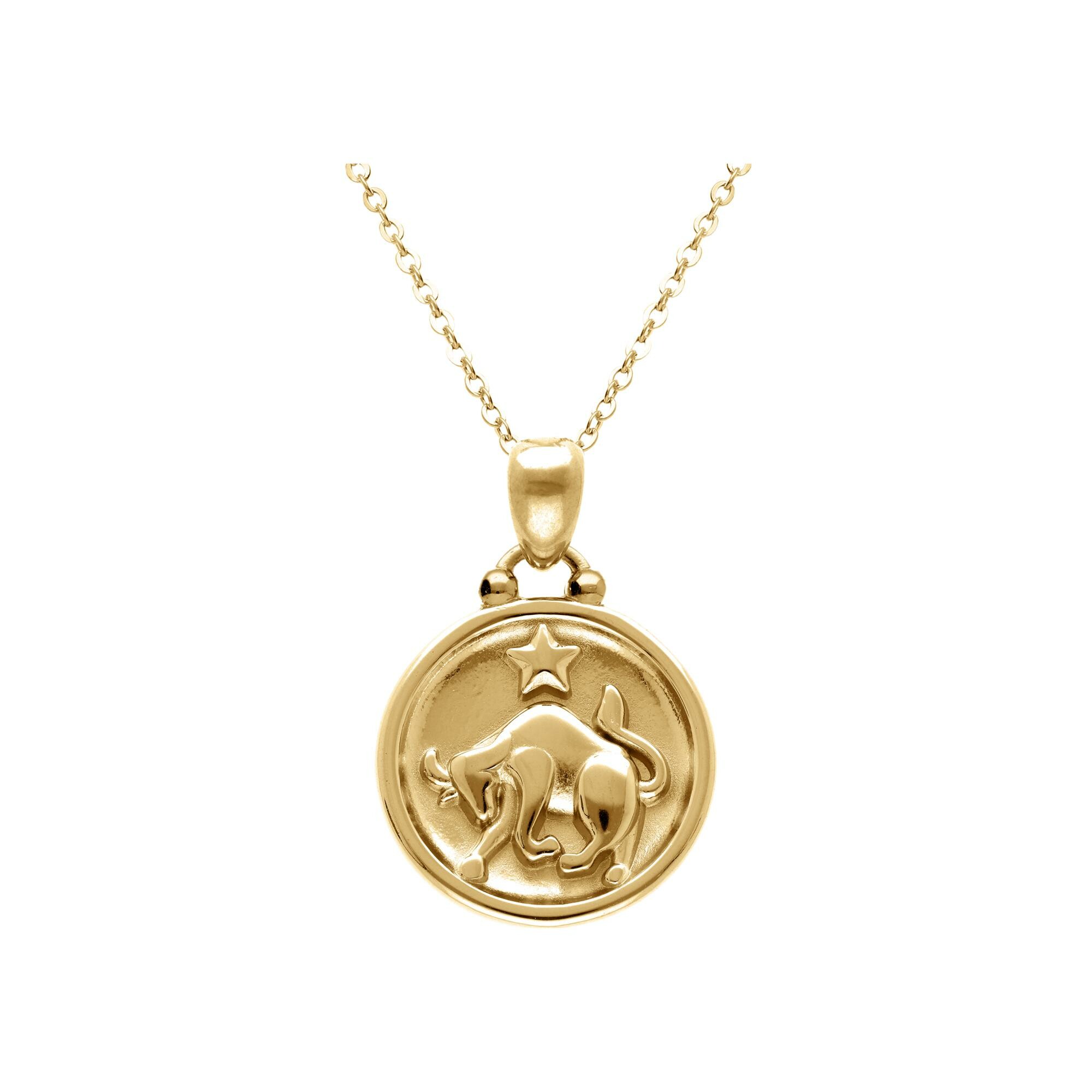 Collier acier doré médaille 15mm zodiaque taureau recto verso constellation 40+10cm Description détaillée
