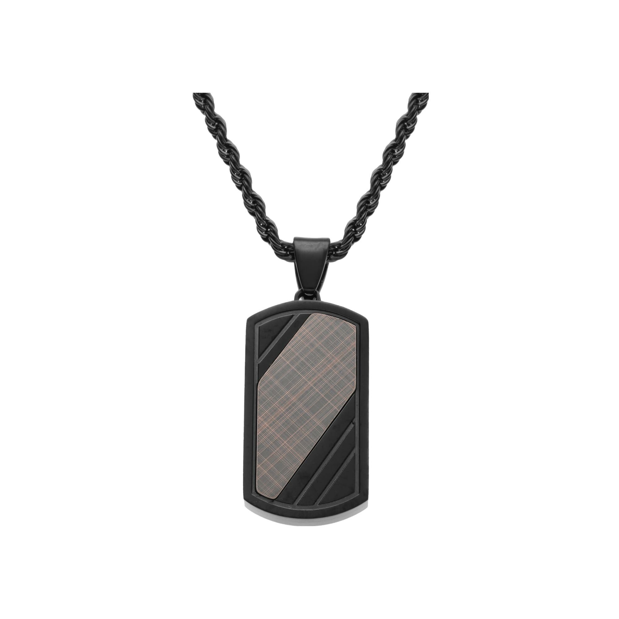 Collier acier et pvd noir avec pendentif rectangualire 33*18mm 50+5cm Description détaillée