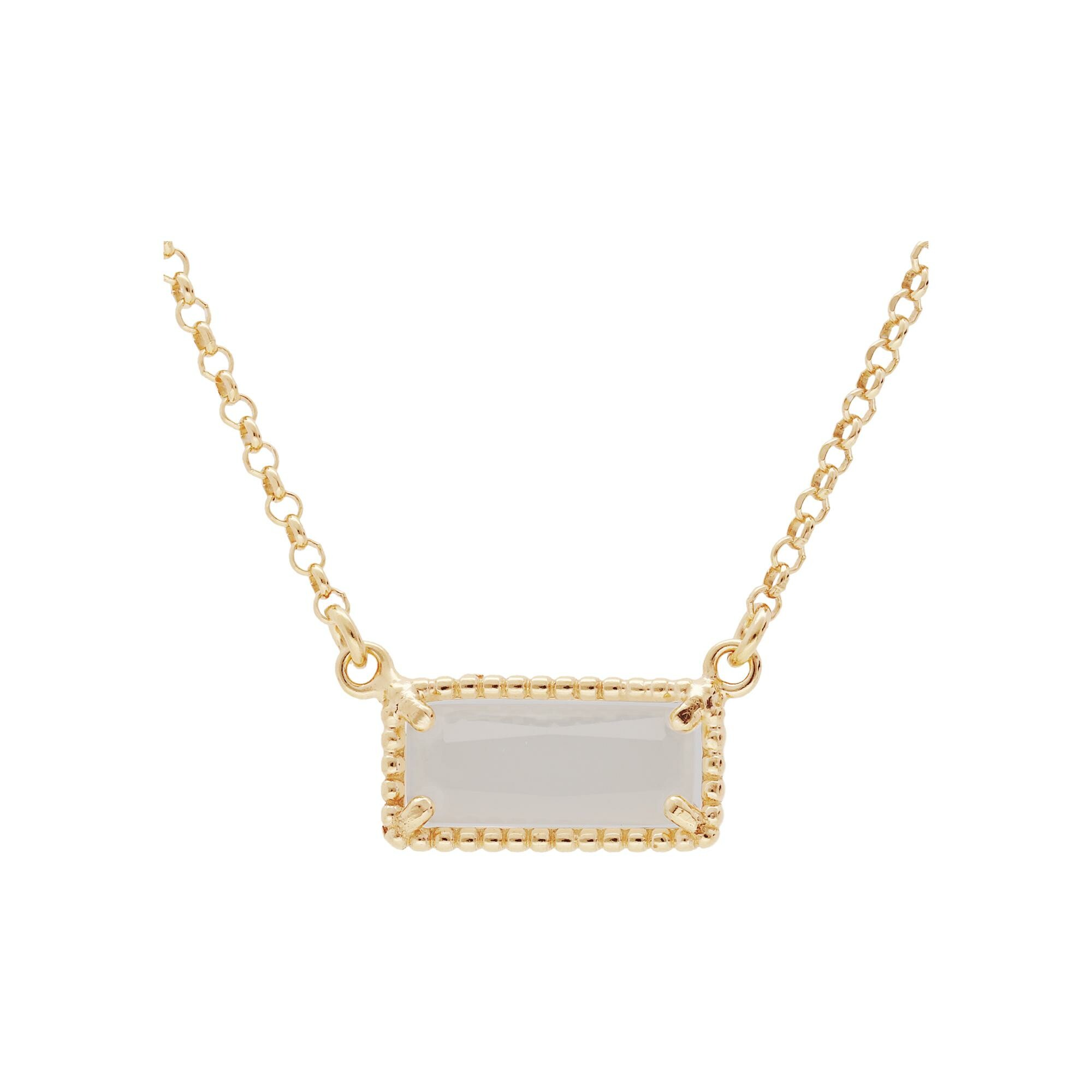 Collier argent et dorure jaune pendentif rectangulaire pierre de lune véritable 38+5cm Description détaillée