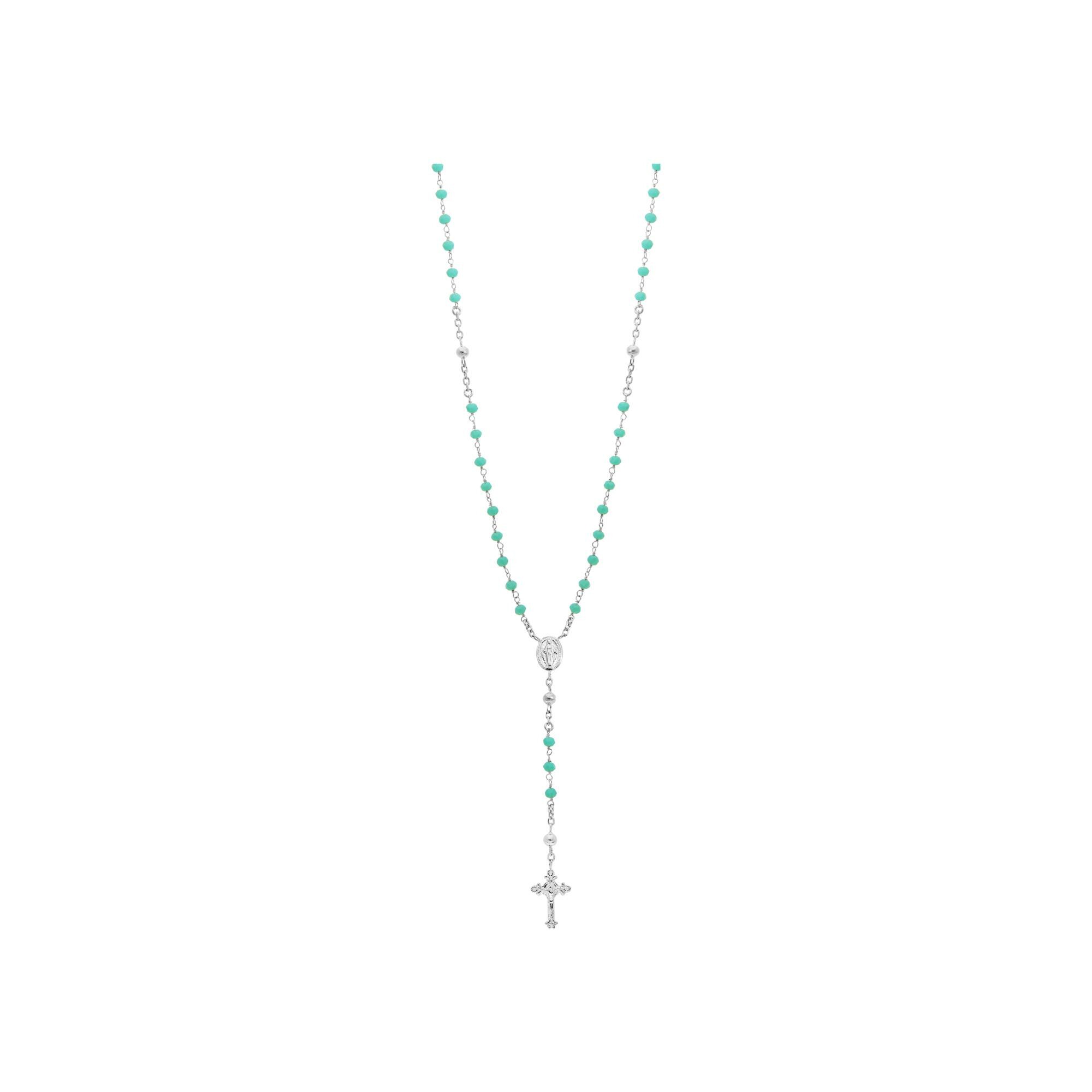 Collier argent rhodié chapelet verre facete turquoise 50+5cm Description détaillée