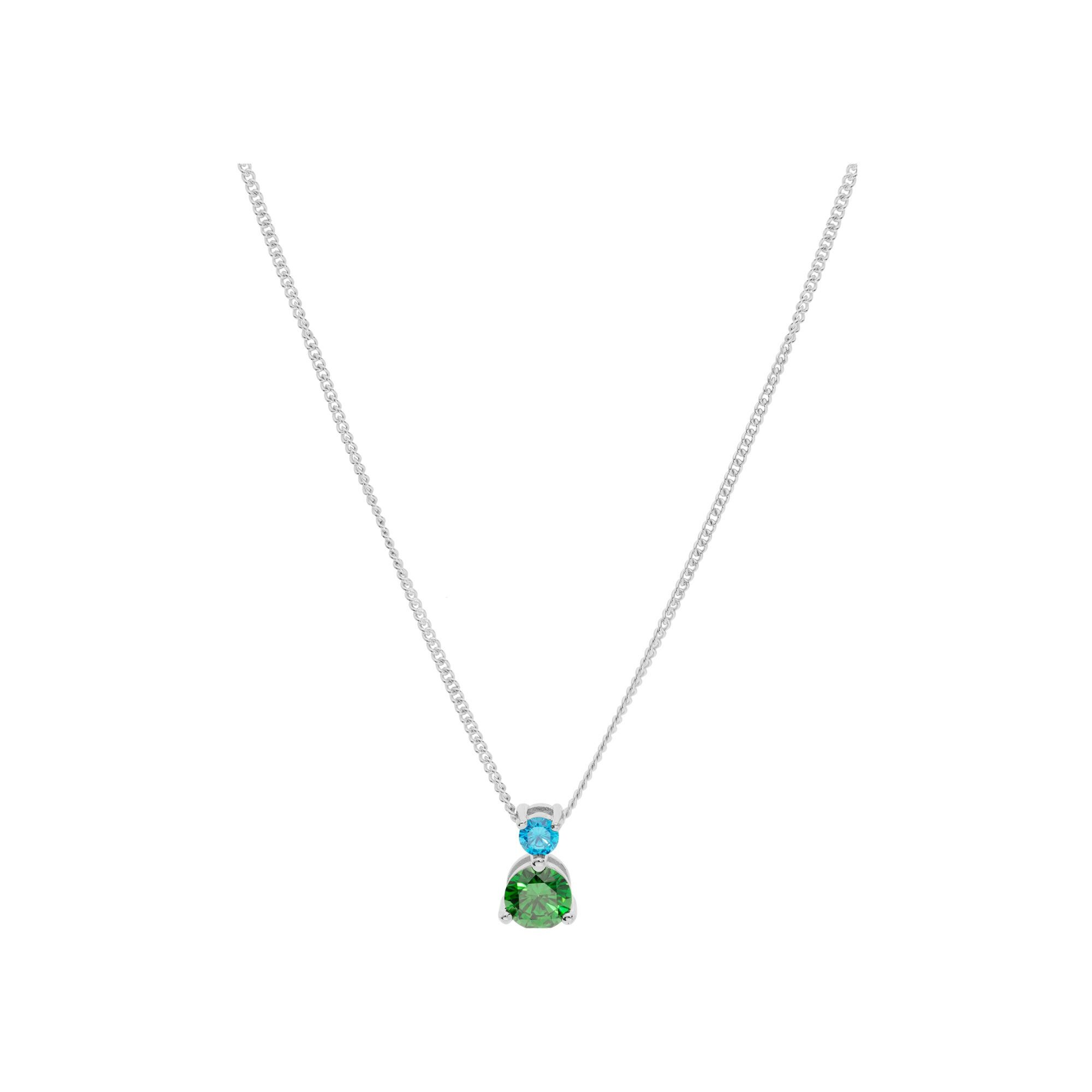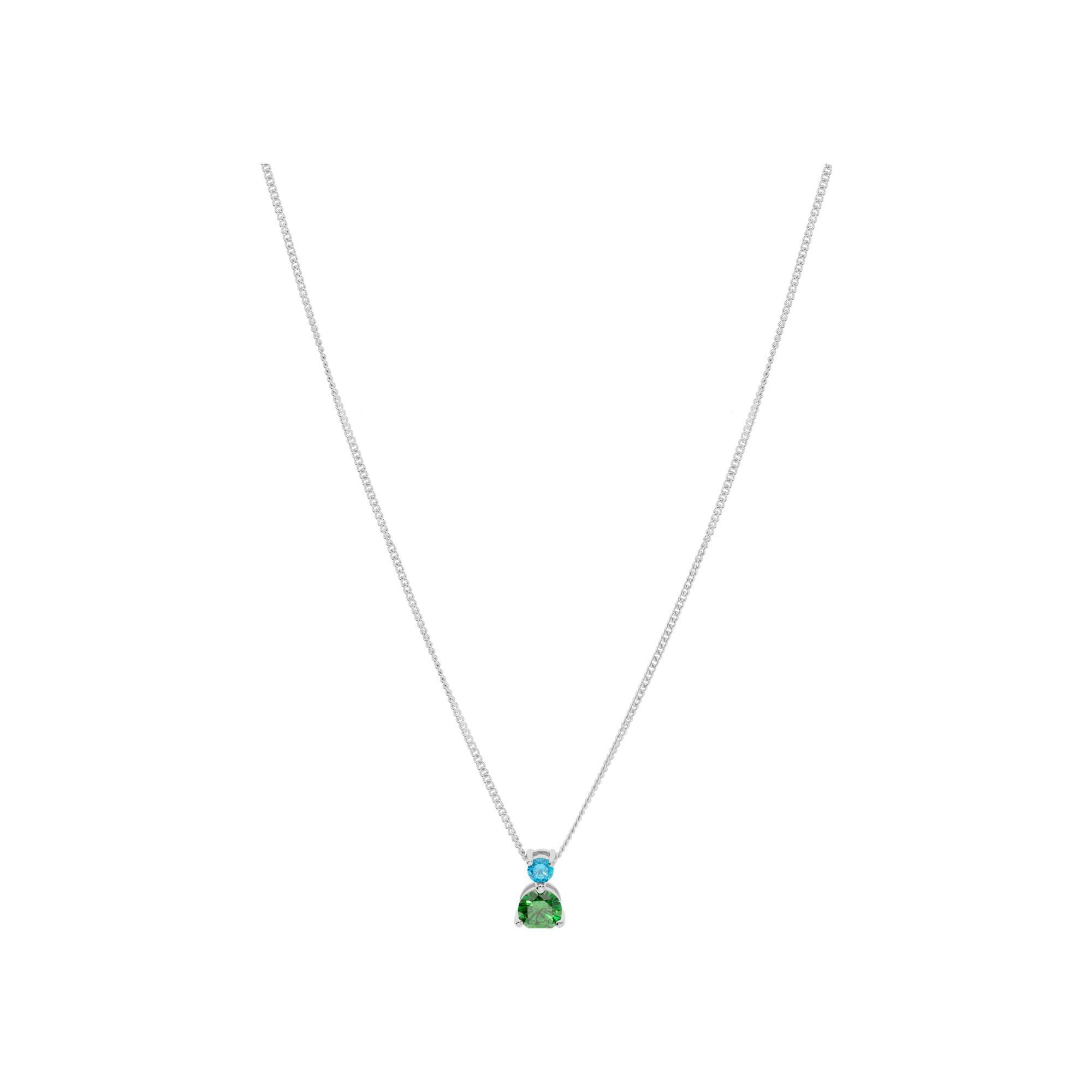 Collier argent rhodié pendentif 2 oxydes sertis 3 et 5mm bleu et vert 42+3cm Description détaillée