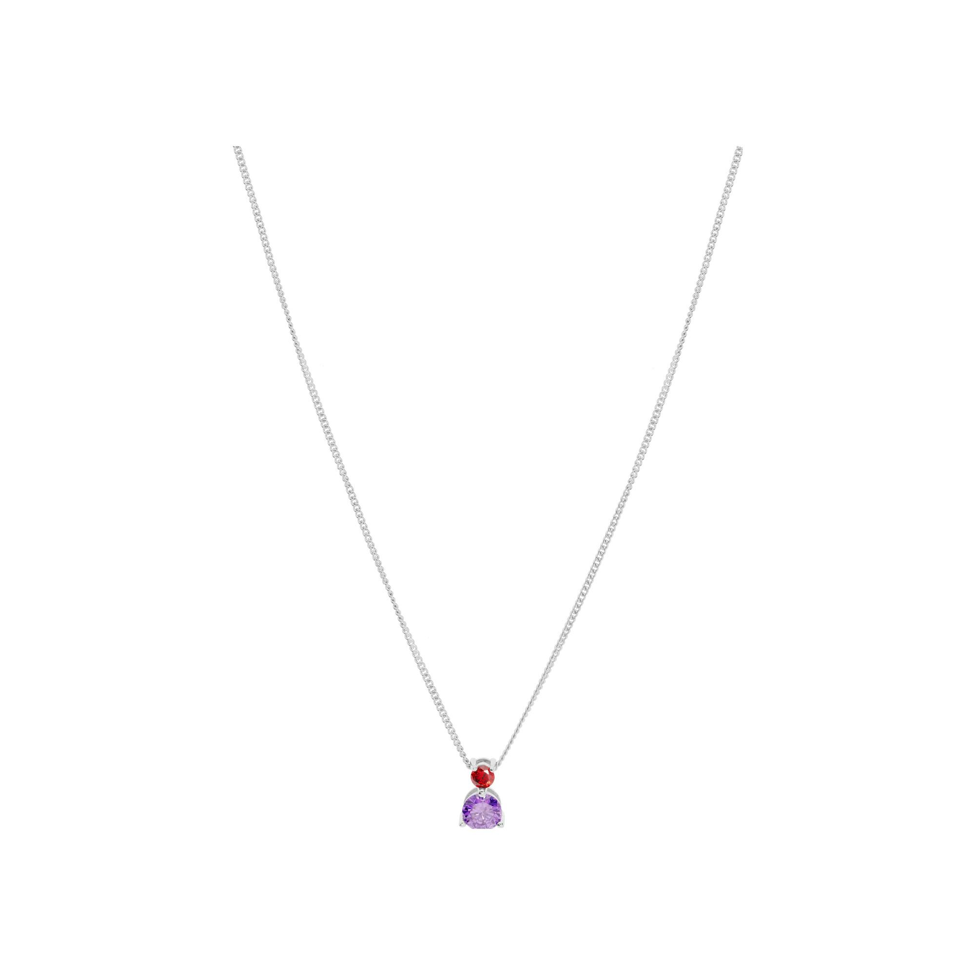 Collier argent rhodié pendentif 2 oxydes sertis 3 et 5mm rouge et violet 42+3cm Description détaillée