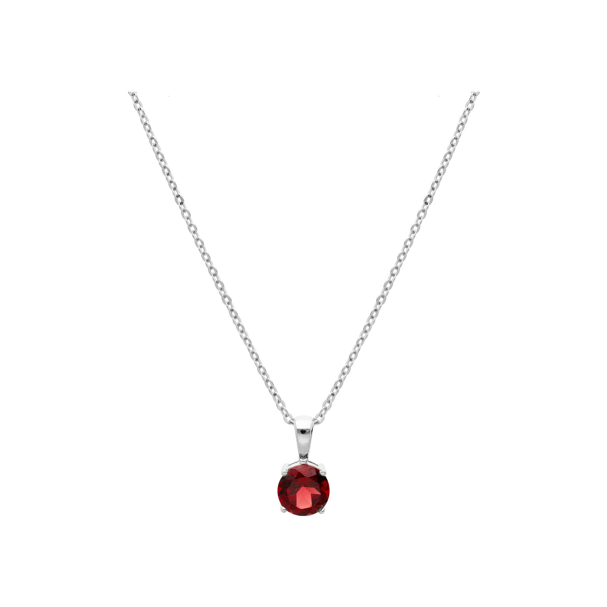 Collier argent rhodié pendentif pierre véritable grenat 6,5mm 42+3cm Description détaillée