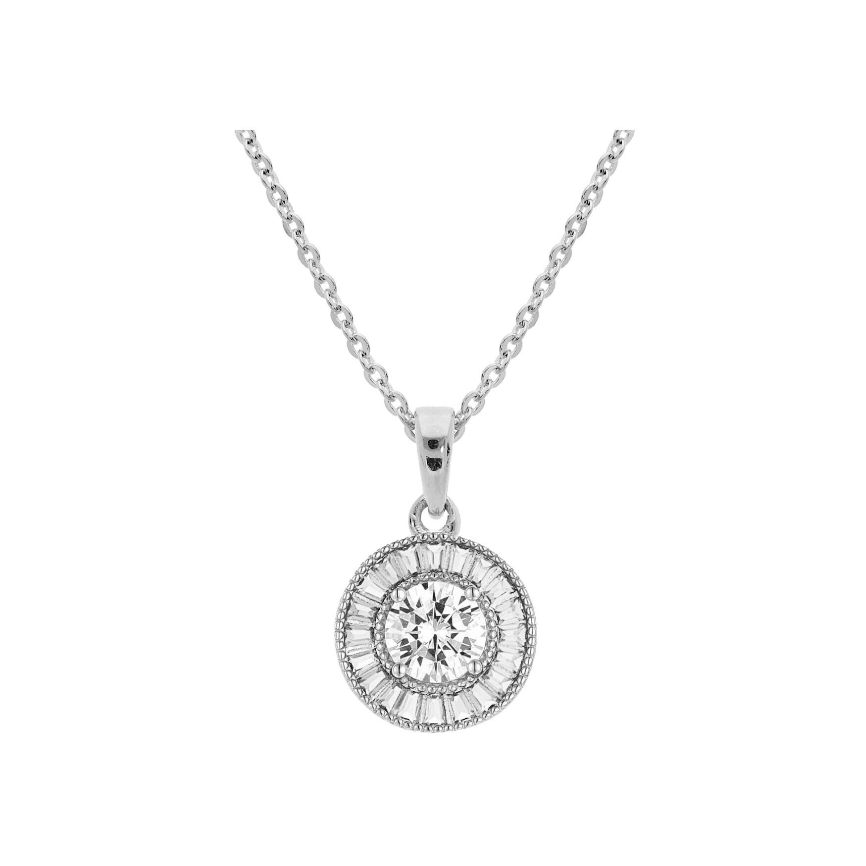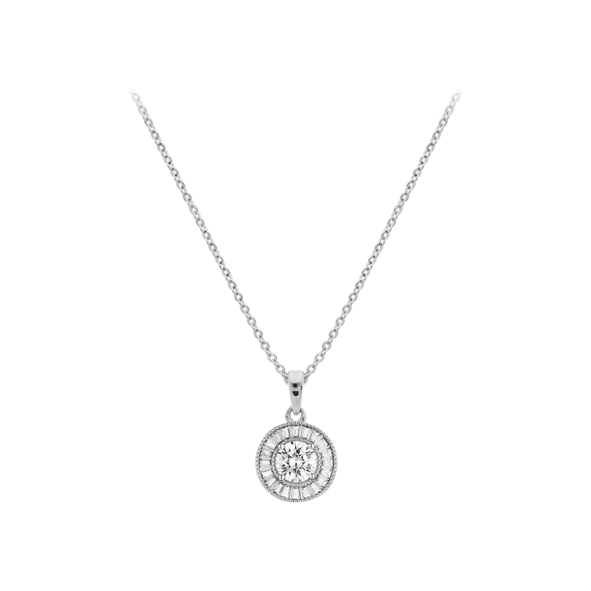 Collier argent rhodié pendentif rond oxydes blancs sertis 40+5cm Description détaillée