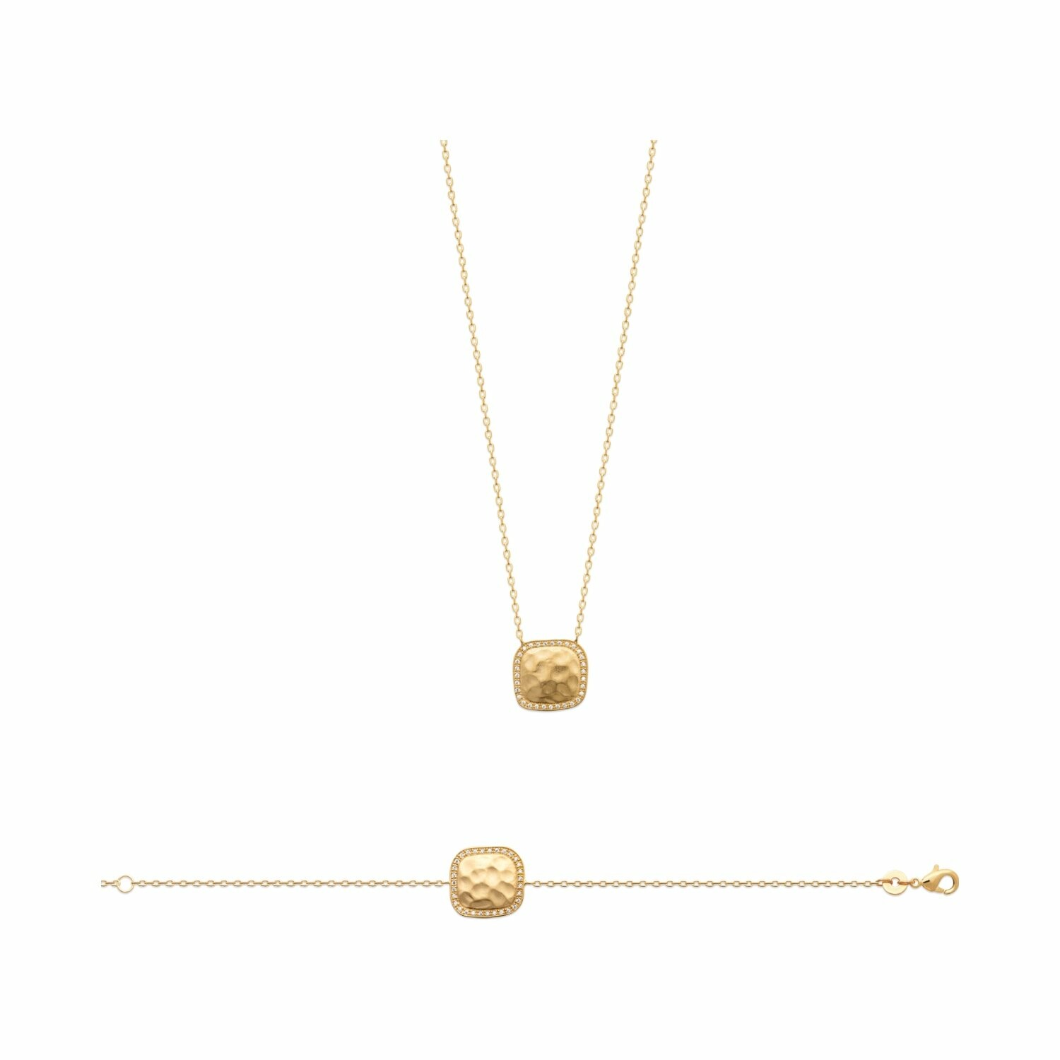 Collier en plaqué or et oxydes de zirconium, 45cm Description détaillée