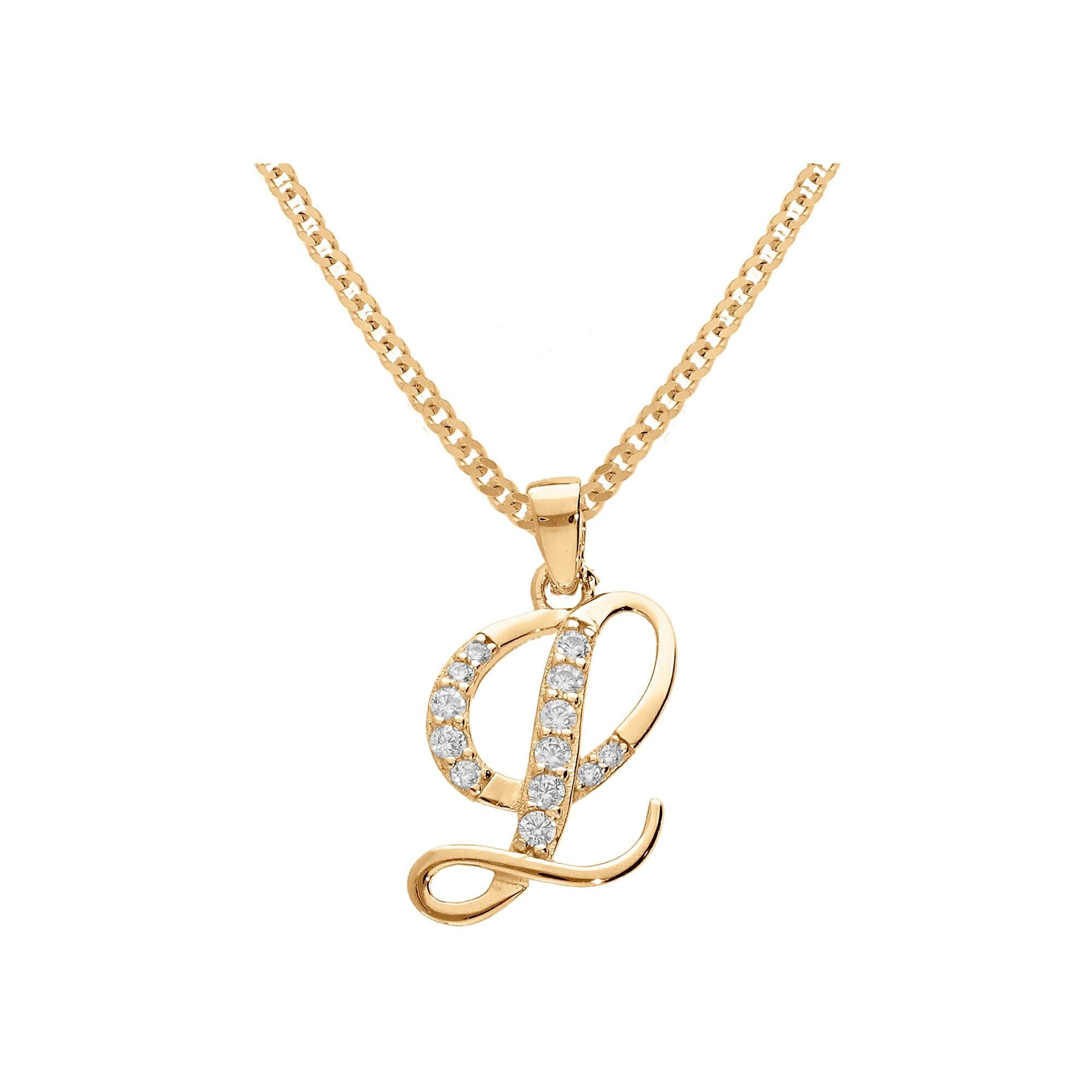Collier vermeil pendentif initiale l oxydes blancs sertis 42+3cm Description détaillée