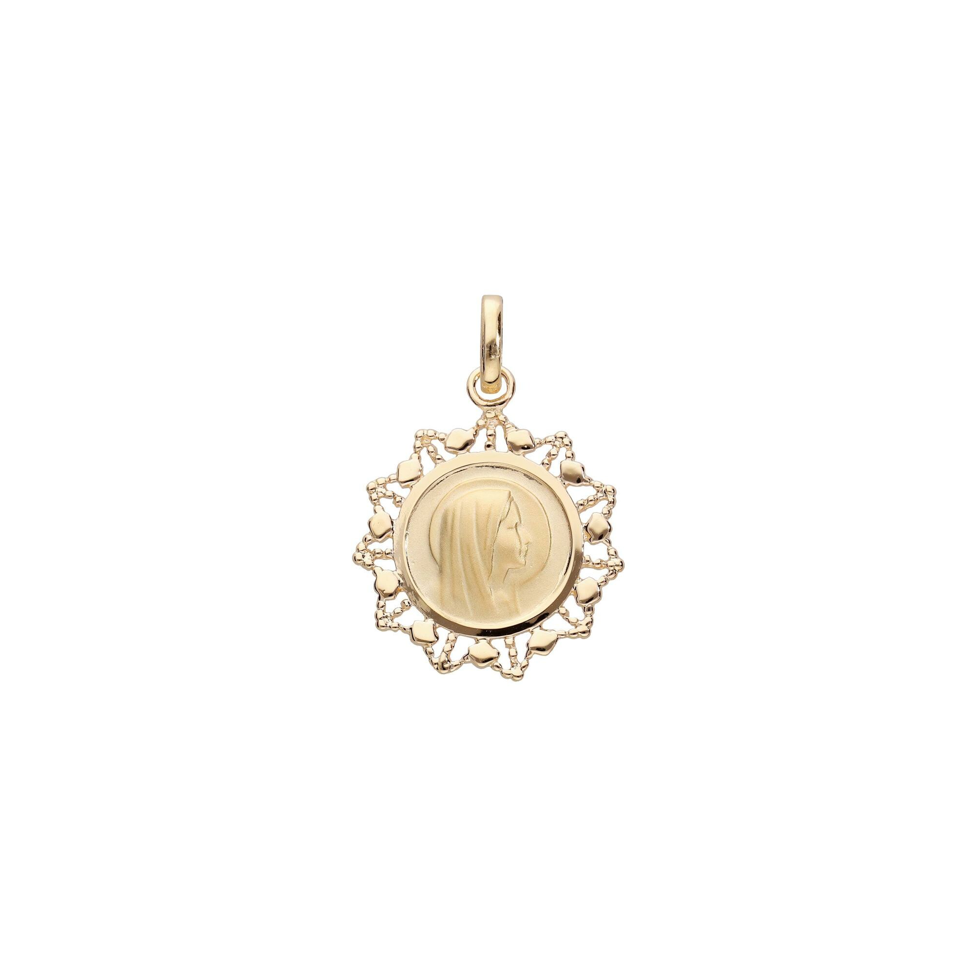 Médaille Vierge contour dentelé en plaqué or Description détaillée