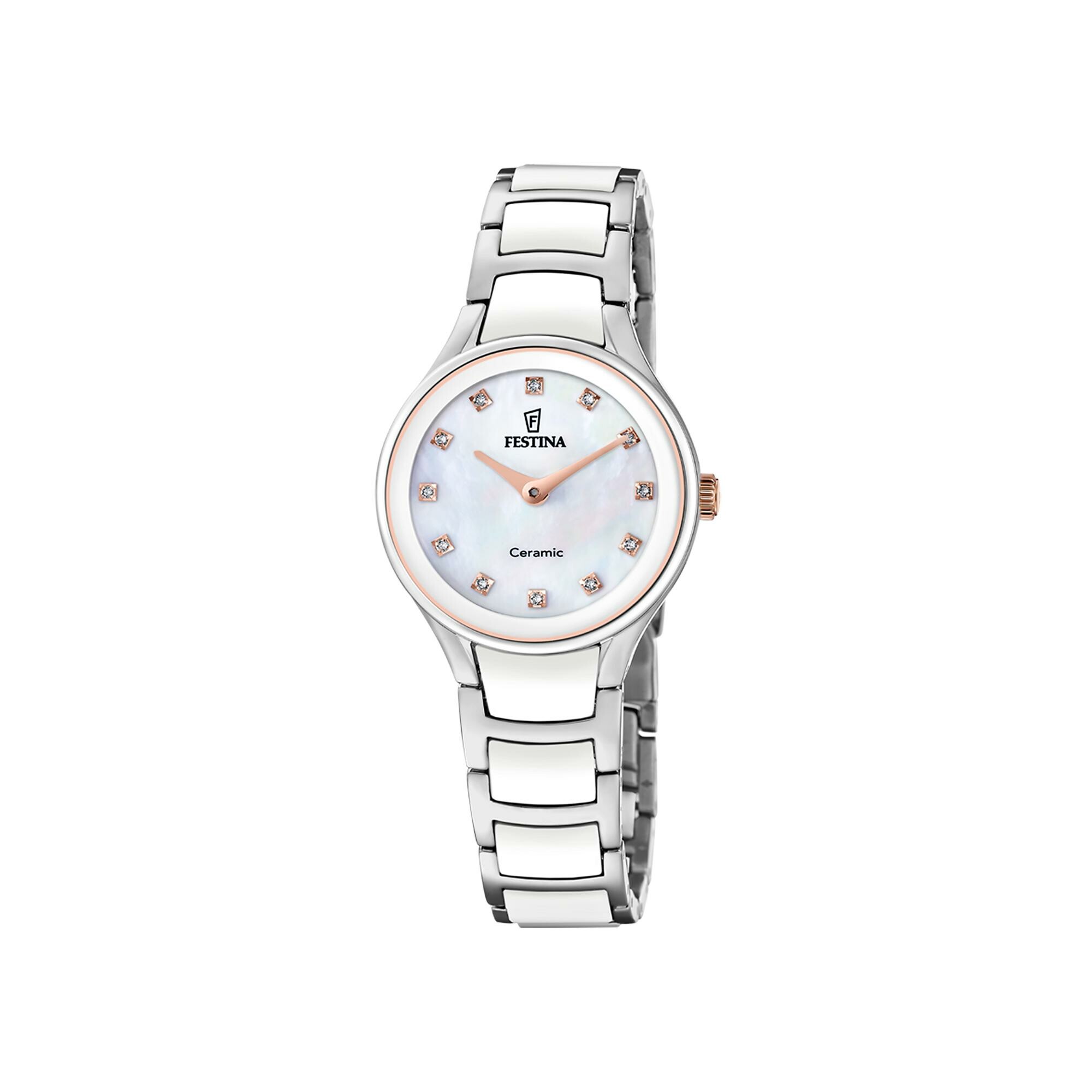 Découvrez la montre Ceramic F20752/8 signée Festina, une pièce féminine au style lumineux et sophistiqué. Son design associe subtilement acier et céramique dans des tons clairs et élégants, tandis que son cadran nacré apporte une touche précieuse et délicate. Idéale pour illuminer le poignet, elle s’adapte aussi bien aux tenues du quotidien qu’aux occasions plus habillées.