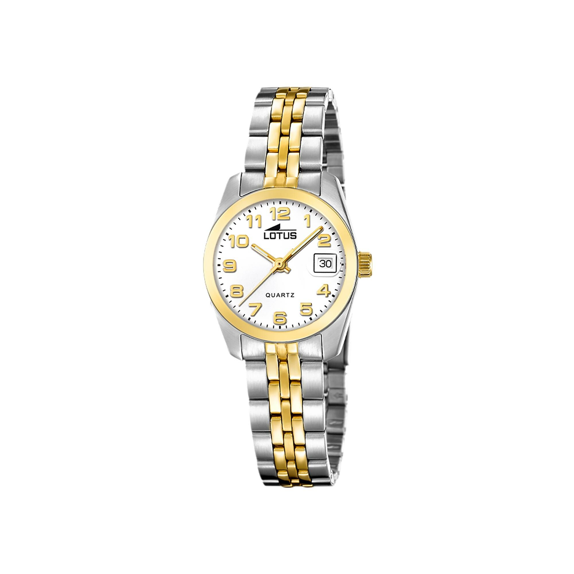 Le bracelet acier bicolore (argenté et doré) assure confort, robustesse et polyvalence : il s’accorde facilement avec des bijoux en or comme en argent. Animée par un mouvement quartz précis, cette montre Lotus garantit fiabilité et simplicité d’utilisation.