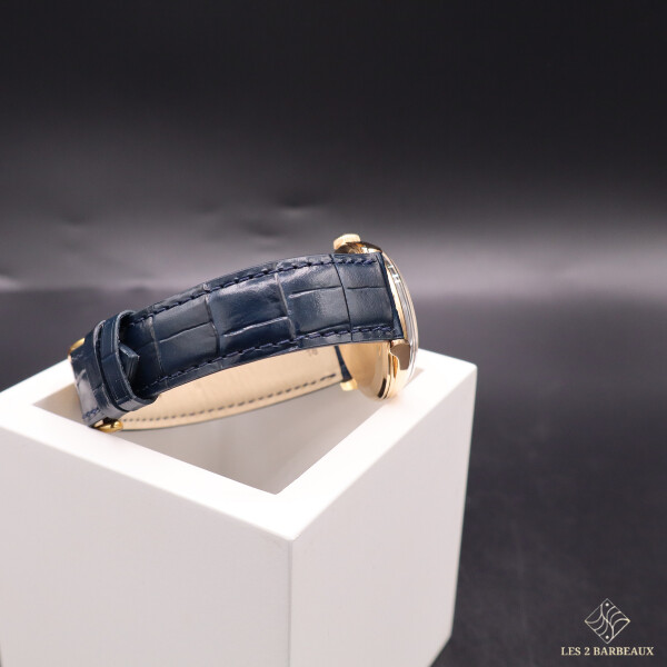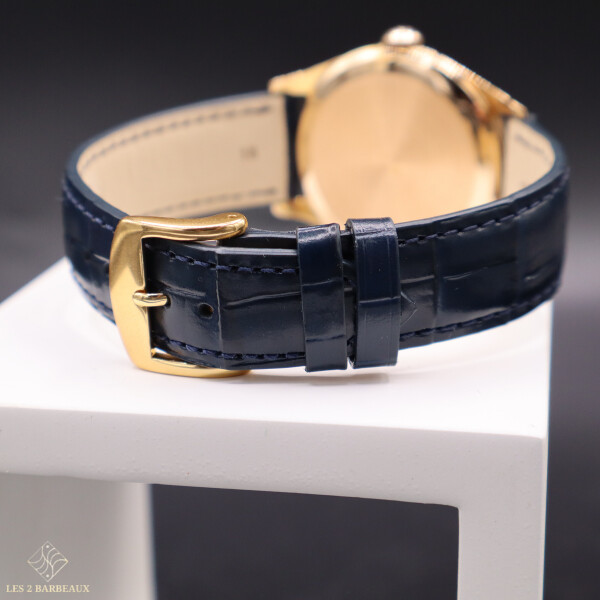Animée par un mouvement à remontage manuel calibre 280, elle séduira les amateurs de montres traditionnelles qui apprécient le rituel quotidien du remontage, symbole d’un lien direct avec la mécanique horlogère. Le bracelet en cuir de veau effet alligator complète harmonieusement l’ensemble, pour un port élégant et confortable.