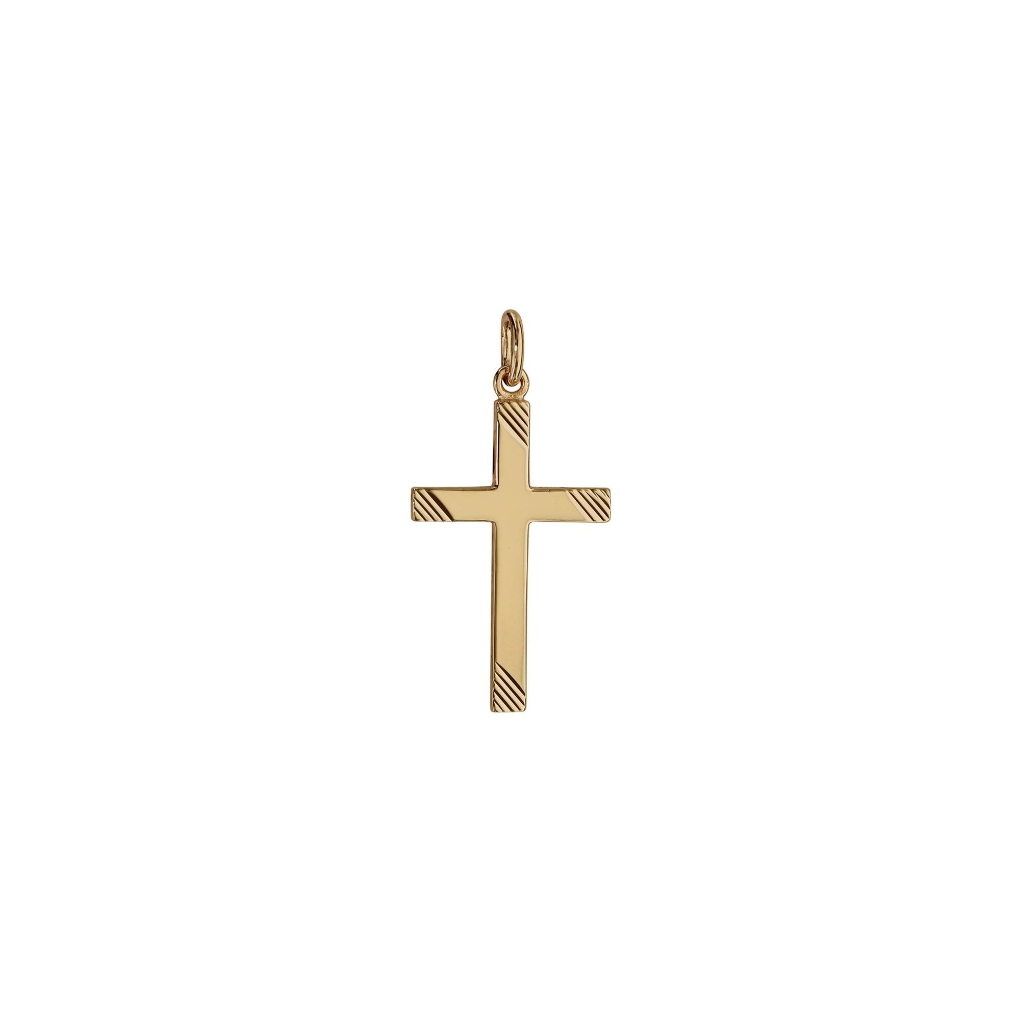 Pendentif croix grand modèle strié 25x16 mm en plaqué or Description détaillée